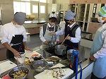 本日5、6限目、1年C組の家庭の授業は、調理実習を行いました。チャレンジしたのは、めった汁とご飯炊き。とってもいい香りに誘われて、調理実習室を覗くと、どのグループも協力しながら、楽しそうに調理に励んでいました。今日は、昼のお弁当の量を調節して、お腹のほうも準備万端で試食にも臨みました。みんな満足感いっぱいでした。また1つ、メニューが増えましたね。今度家族の人に披露してあげてください。