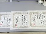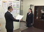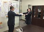 本日、「高円宮杯第74回全日本中学校英語弁論大会」石川県大会において、4位に入賞した大藪佳凜さん(3年)に、読売新聞社より直接、賞状が手渡されました。賞状を受け取った彼女は、とても晴れやかな表情でした。賞状を受け取った後、読売新聞の方と日頃からの英語勉強方法や彼女のスピーチのテーマであった自己肯定感等について、懇談しました。