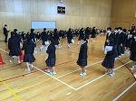 本日29日(土)、第16回石川県中学生新人弓道大会が行われました。今回は各参加中学校の練習弓道場を会場に、大会競技委員(審判役)を選出し、その立会の下での実施でした。団体競技は、3名1チームで、1人12射(4射X3回)とし、その合計的中数で順位を決定します。個人競技は、団体競技の個人の的中数にて順位を決定します。本校からは、男子4チーム女子5チームが出場しました。ぴんと張り詰めた空気の中、静寂を破る的を射た音だけが、弓道場に響いていました。