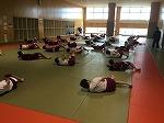 現在、ダンス・マット運動・柔道の3グループに分かれて活動中。ダンスの授業。メンバーで協力しながら、自分達のダンスをブラッシュアップしている姿は、とても素敵でした。柔道の授業。撮影した動画で、自分の技をチェック。次に繋げます。
