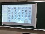 2年生国語では、現在平家物語を学習中。今日の授業では、1人1人が那須与一を漢字一文字で表現した作品の鑑賞会を行っていました。同じ漢字で表していても、それぞれの解釈があり、「感じ」かたに違いがありますね。大変興味深く拝見しました。