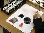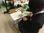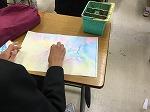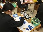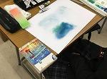 2年美術。現在モダンテクニックを用いて、本のブックカバーを製作中。今日は試行錯誤しながら、自分が選んだ本のイメージに合う色合いを探しました。1人1人オリジナルの素敵なブックカバーが完成しそうです。