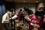 写真は、1日目午後9時からのリーダー会、その後の各階の部屋長への伝達の様子。