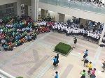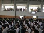 中学生、高校1年生が第1フロアに集合してのオープニング。今年の紫錦祭のテーマは、「DIVE~僕らの青春~」。中高生の皆さんが「思い切りDIVEする2日間」が開幕しました。