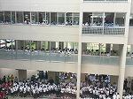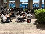 昨晩からの雨もあがり、暑い日差しが降り注ぐ中での紫錦祭2日目となりました。中学生は、最初に、第1フロアでの高校1年生後半クラスのステージ発表を鑑賞しました。