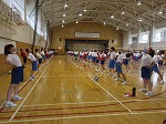 1年生から3年生までが、縦割りで赤団・青団・黄団に分かれ、各団お揃いのハチマキを締めて試合に臨みました。