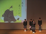 3月7日(火)石川県文教会館で学習成果発表会が行われました。この1年間、各教科や総合の授業で学んできた成果を緊張しながらも精一杯発表し、準備や運営は生徒会役員、多くのボランティア生徒で行いました。鑑賞側の生徒も振り返りタイムでは質問や意見を積極的に行うなど、学年を越えて深く学びあえる発表会となりました。