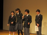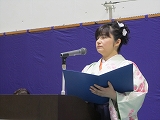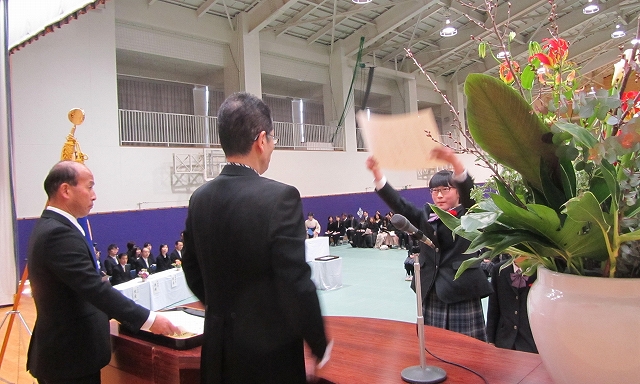 2年の中村総太朗さんが卒業生に対しての感謝と激励を込めた送辞を述べ、卒業生代表の玉川未琉さんが、3年間の思い出と高校生活への決意を答辞で語りました。