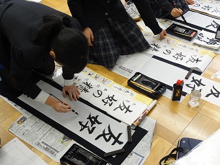 1月9日(火)3学期の初日は全学年とも書初め競書会で始まります。ピーンとと張りつめた空気の中どの生徒も真剣に取り組み、素晴らしい作品を仕上げていました。