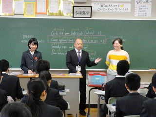 3/1(木)の朝、3年生の各クラスで英語による学級朝礼が行われました。生徒会が綿密に準備し当日にたどり着いた企画です。各クラスでALTや英語の先生の補助もあり、担任の先生も頑張って英語を使って連絡していました。英語で伝えることにより、普段以上に真剣に聞いている生徒の姿が印象的でした。