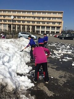3/3(土)の球技大会後に、希望者によるボランティア活動を行いました。校舎内では窓のさんの掃除をし、駐車場ではたまっている雪を溶かすための作業を行いました。