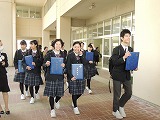 3/11(日)に仮入学が行われました。学校長挨拶、中学生活についての説明などを聞いた後、グループごとに分かれ、制服等の採寸及び物品の購入を行いました。