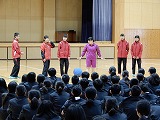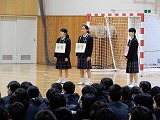 4月12日(木)中高対面式に続いて、1年生に対しての新入生歓迎会と部活動説明会が行われました。生徒会による1年間の行事の説明と各部のよる紹介に対して、新入生の興味津々の表情で話を聴いている様子が見られました。