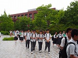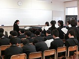5/30(水)の午後から3年生が金沢大学に訪問し、大学生と交流しました。本校は高校への入試がありませんので、他の中学校に先駆けて4年後のキャリアについて考えることができます。