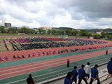 5/10(木)金沢市営陸上競技場にて、中高合同の第14回陸上競技大会が行われました。朝あいにくの雨模様で、その後も気温が上がらず肌寒い1日でしたが、生徒たちは高校生の姿に感銘しながら元気よく競技に参加していました。