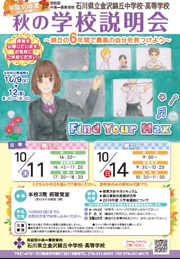 当日は平成31年度石川県立中学校入学者募集要項を配付します。