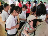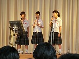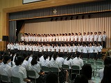 今年度のスローガンは『百花繚乱』です。中高合同吹奏楽部の演奏を始め、中高が連携した様々な催し物が開催されました。残念ながら雨のため室内になりましたが、中高生徒会合同企画の紫錦ステージでは、中学の生徒が高校生や保護者は大勢見つめる中、カラオケ大会に出場し、その中から決勝に進出した生徒も結構出ました。2日目の全体ステージでの全体合唱もとても頑張っていました。