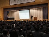 11月3日(土)の午後から、本校第一体育館で中学生・高校生合同で教育講演会が開かれました。株式会社チャックスファミリー代表取締役の安孫子 薫 先生をお迎えし、『夢を描き 夢を実現する ~すべてディズニーランドとの出会いから始まった』という演題で語っていただきました。