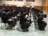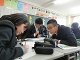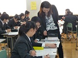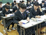 11月30日(金)の1~3限に3年全クラスで「中学国語から高校現代文へ」という内容で高校の先生による授業が行われました。今回の授業の目標は「中学国語と高校現代文の違いを知る」「高校入学までの課題を設定する」の2点でした。高校の現代文の中心である「評論」の読み方について、今の段階でやってほしい事、意識してほしいことなどについて分かりやすく伝えていただきました。