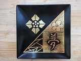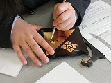その後、PTAから寄贈された角皿に金箔で飾り付けを行いました。