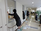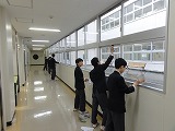 3月13日(水)に錦ピカピカ大作戦が行われました。卒業生への感謝の心を持っているボランティア37名が集まり、グローリーホール、第二フロア前廊下、玄関の窓ふきを行いました。自らの意思で集まった生徒達との活動は本当に気持ちの良いものでした。