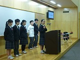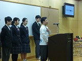 3月20日(水)に1年生の英語スピーチコンテストが発表者、司会者、質問者全ての会話がオールイングリッシュで行われました。発表者のスピーチはもちろん素晴らしいのですが、何より多くの質問に対してアドリブで答える姿に感激しました。質問に対してウィットにとんだ切り返しをして会場を沸かせるなど、中学1年生とは思えないコミュニケーション力にもびっくりです。参観していた高校の英語の先生やALTの先生からもお褒めの言葉をいただきました。(もちろん英語で。)