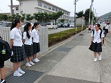 多くの生徒がボランティアで参加し、あいさつの輪を広げました。