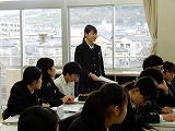 12月6日(金)の5.6限に3年生を対象に卒業生と語る会を行いました。生徒たちは、大学4年生の4名から話を聞くことができました。プログラマー、エンジニア、公務員などの就職が決まっている先輩方の話はどれも魅力的で、生徒達は大変熱心に聴き、質問をしていました。夢や目標に向かって努力することの大切さや中学校生活で大切にしなければならないことを再認識させられた貴重な時間となりました。