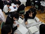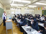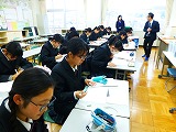 12月2日(月)と4日(水)に国語科の発展授業として、金沢錦丘高等学校の北島副校長先生による授業が行われました。「ことば」の意味が、国語辞典によって表現が違ってくることに着目した、知的好奇心を揺さぶる素敵な授業でした。3年生のどのクラスも意欲的に取り組む姿が見られました。
