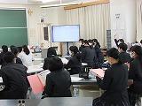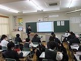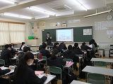 1年生総合的な学習の時間では「未来につなぐ石川の技」と題して、5つの業種で活躍しておられる事業所等の皆様をお招きし、その仕事についての理解を深め、さらに後世に伝えていくにあたっての課題についてお話をしてもらいました。司会や講師の誘導係もすべて生徒が担当し、60分という短い時間でしたが、質疑応答も活発に行われた大変有意義な時間になりました。今後は、お話しして頂いた課題について、その解決策について創造する学習を進めていきます。