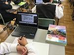 (写真は、本日の授業の様子及び1年生の「授業ノート」「自学ノート」の掲示です。)