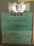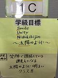 中学校棟階段の掲示コーナーに、12年生各クラスの学級目標(写真)が掲示されています。目標に込めたみんなの思いが達成できるよう、共に協力・切磋琢磨し素敵なクラスにしてください。