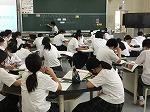 生徒達は今日も、各授業に意欲的に取り組んでいました。写真は、本日の授業の様子です。3年数学の授業では、自動車で時速100㎞で走行中の場合、前方の車とはどれだけの車間距離が必要かを、関数を使って考えていました。自分達の身近な生活の中にも、数学が活かされています。