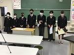 次に生徒会執行部より、今月の生活目標「安全な生活を送ろう」に係り、①降雪時・積雪時・凍結時の自転車通学禁止②バスマナー③コロナウイルス感染対策、の3点について話がありました。