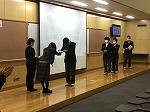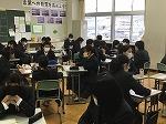 3年生は16グループに分かれて、高校生各グループの「防災・減災」あるいは「地域活性化」についての発表を聞きました。これも中高一貫校ならではの特色のひとつです。高校生のみなさん、ありがとうございました。