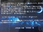 2学期も残すところ、あと一日となりました。今日は各学年で、締めくくりの学年集会(5限:2年、6限:3年、7限:1年)が行われました。集会では、リーダー会からの振り返り、漢字一字での各自の振り返り(1年)、学級MVP表彰(3年)、先生方からの冬休み中の学習や生活、次の学年に向けて等の話がありました。(写真上段:1年 中段:2年 下段:3年)