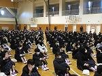 終業式ではまず、校長先生からの話がありました。この2学期は、生徒の皆さんが学習や行事、部活動等に頑張る姿を見ることができたこと、冬休みを迎えるにあたり、①自分の命を大切にすること②今やるべきことをやる、の2点をお願いしたい等の話がありました。続いて、担当の山崎先生、安原先生より冬休みの生活及び部活動についての確認がありました。最後に全員で校歌を斉唱して終了しました。