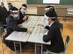 本日6、7限目に、3年生の百人一首大会が行われました。既に実施した1、2年生同様、マスク及びフェイスシールド着用、競技会場を複数に分けて、感染拡大防止に十分配慮しての開催となりました。3年生は今年で3回目の百人一首大会、気合いの入り方が違いました。放送で読み手の先生の声が聞こえるやいなや、札に手が伸びる光景をあちこちで見ました。闘志を心に秘めながらの真剣勝負が繰り広げられました。