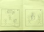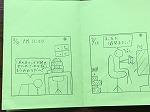 1年生国語科「今に生きる言葉」の単元で、1人1人が制作した『故事成語ブック』が、1年生フロアに置いてあります。四コマ漫画で何という故事成語を表しているか、というクイズ形式のブックになっています。みなさんもクイズにチャレンジしてみてください。