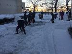 本日放課後、野球部と男女卓球部のみなさんが、部活動の時間を使って、校舎裏側の雪が溶けにくい場所を除雪してくれました。本当に助かりました。感謝です。