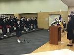 続いて、校長先生からの励ましの言葉がありました。昨年開催の東京オリンピックでの最年少金メダリスト、スケートボードの西矢椛さん、現在開催中の北京オリンピックでの銅メダリスト、スキーモーグルの堀島行真さんを取り上げ、「かなえたい自分」「なりたい自分」に向かって、強い意志と明確な目標を持ち、自律的にたくましく、これからを歩んでいってほしいとの話がありました。