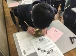 式後は、各教室に戻り、記念品制作に取り組みました。1人1人の思いを、金沢の伝統工芸である金箔を使った角皿に表現しました。