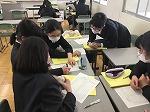 1年生は、各クラスで、この1年間で成長できたことや2年生に向けて頑張りたいことについての「自分年表スピーチ」を行いました。スピーチの後は、自分やクラスメイトの長所について考えるグループエンカウンターに取り組みました。グループのメンバーから、「私からみると、◇◇さんは、頼りになる」等々言われて、みんな照れながらもとってもうれしそうでした。