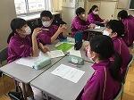 今日は、辞書の引き方を確認しました。ワークシートに記載の「AあるいはBで始まる単語」を、辞書の単語配列と同じようにアルファベット順に並び替える練習に取り組みました。答え合わせでは、正解するとうれしそうな声が上がっていました。楽しんで学ぶことって大切ですね。