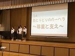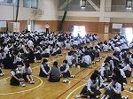 続いて、全体討議【テーマ:通学マナーについて】が行われました。生徒会執行部からの通学マナーに関する事前アンケートの結果報告及び執行部制作動画「もしマナーがなかったら」の視聴の後、討議①「マナーはなぜあるのか?」、討議②「マナーを守るにはどうしたらよいのか?」について、全校生徒による話し合い、意見交流、振り返りを行いました。