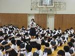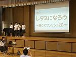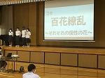 生徒会執行部の開会のことばのあと、はじめに各クラスの学級目標の紹介がありました。学級目標に込めた思いを1人1人が行動に移し、さらに素敵なクラスにしてください。期待しています。