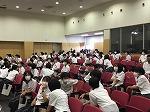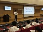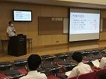 学年発表会は、各クラス代表の発表及び質疑応答、講師の方からの講評と続きました。着眼点の面白さ等、どの発表も聞き応え十分でした。学年発表会後は、セブンイレブンジャパンの方の講演会でした。講演会では、どの生徒の皆さんも、メモを取りながら真剣に話に耳を傾けていました。発表会及び講演会後の質疑応答では、たくさんの質問がでました。