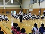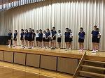 また、新人大会激励会と併せて、国体水泳競技に出場する小河原蒼大さん(3年)、同じく国体水泳競技及び世界ジュニア選手権(セーシェル共和国)に出場する伏屋杏彩さん(3年)を全校生徒で激励しました。
