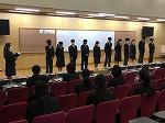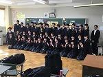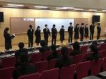 式の最後は、卒業の歌でした。はじめに卒業生が、合唱コンクール課題曲であった思い出の「大地讃頌」を合唱しました。続いて、在校生を含めた生徒教職員全員で、「旅立ちの日に」を合唱しました。歌とともに3年間のいろいろな出来事が頭に浮かび、感動の渦が式場全体を包み込みました。ピアノ伴奏は、中島歩音さん(3年A組)、府中屋紗羽さん(3年A組)、礪波愛莉さん(3年B組)が務めました。