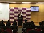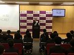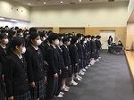 修了式では、校歌合唱に続き、校長先生のお話がありました。1年間の成長を讃えるとともに、進級にあたり生徒の皆さんに2つのお願いがありました。